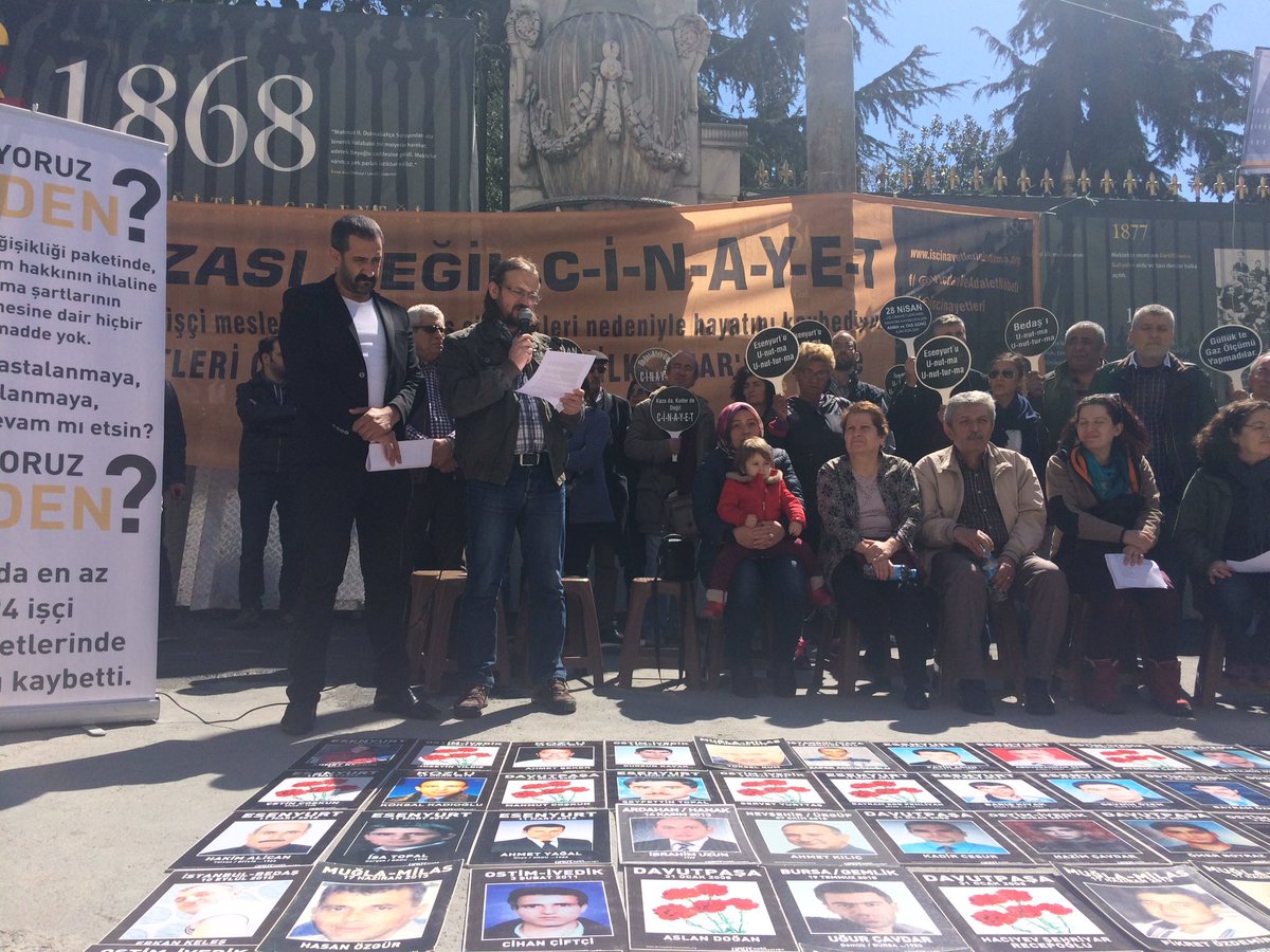 Aileler adına basın açıklamasını Davutpaşa’da yakınını yitiren İdris Çabuk okudu. 2016’daki iş cinayetleri tablosuna dikkat çeken Çabuk, 2017’nin ilk iki ayında da onlarca işçinin iş cinayetlerinde katledilmeye devam ettiğine dikkat çekti. İş cinayetlerine ‘dur’ demek için nöbeti sürdürdüklerini ifade etti. Gündemdeki anayasa değişikliğinde işçilerin lehine hiçbir şey olmadığı ve iş cinayetlerini durduracak düzenlemelerin yer almadığını belirtti. 28 Nisan’ın İş Cinayetlerinde Hayatını Kaybedenleri Anma ve Yas Günü ilan edilmesi talebiyle sözlerini sonlandırdı.