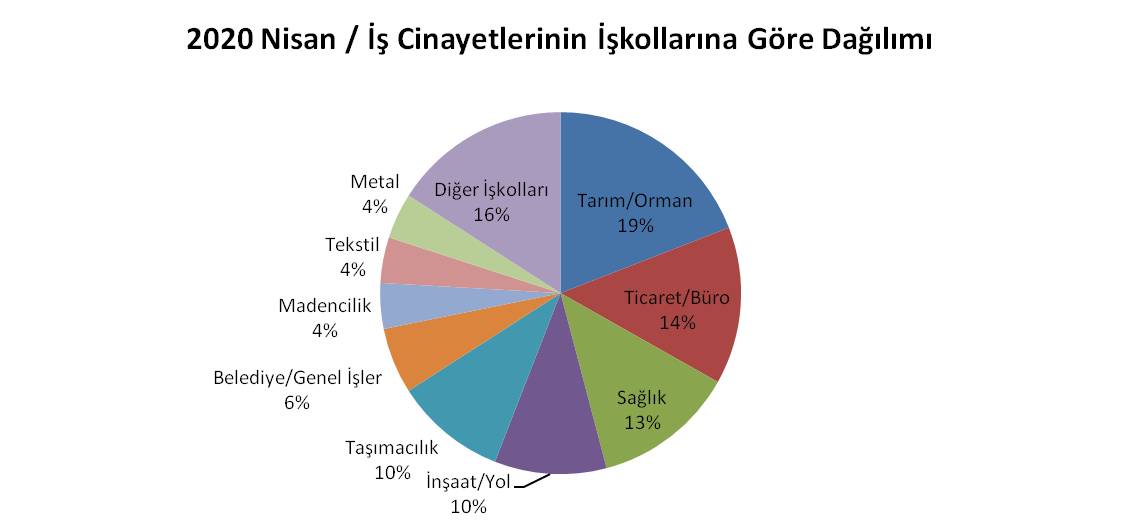 • Ölümler en çok tarım, ticaret/büro, sağlık, inşaat, taşımacılık, belediye/genel işler, madencilik, tekstil, metal, konaklama, güvenlik, ve ağaç/kağıt işkollarında gerçekleşti.