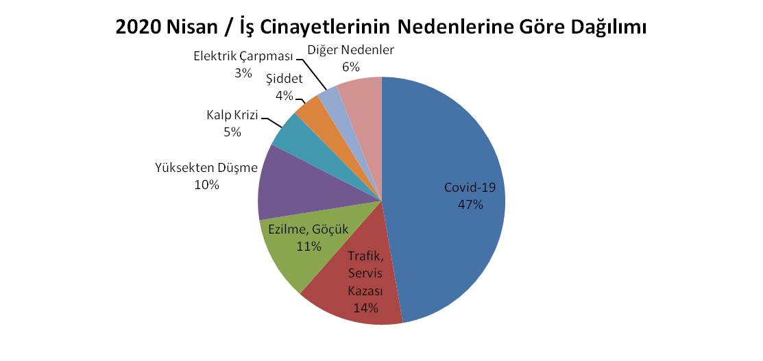• En fazla ölüm nedenleri sırasıyla Covid-19, trafik/servis kazası, ezilme/göçük, yüksekten düşme, kalp krizi, şiddet ve elektrik çarpması.