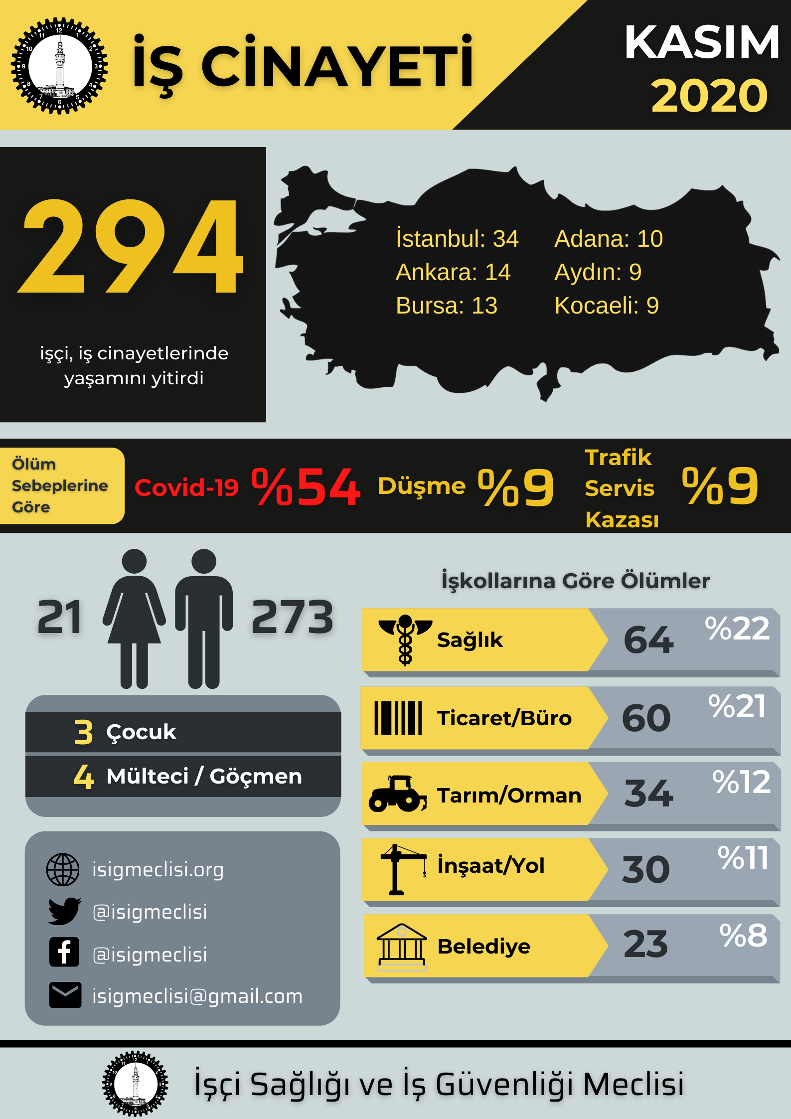 2020/ Kasım ayında iş cinayetlerinde hayatını kaybeden 294 işçiyi saygıyla anıyoruz…