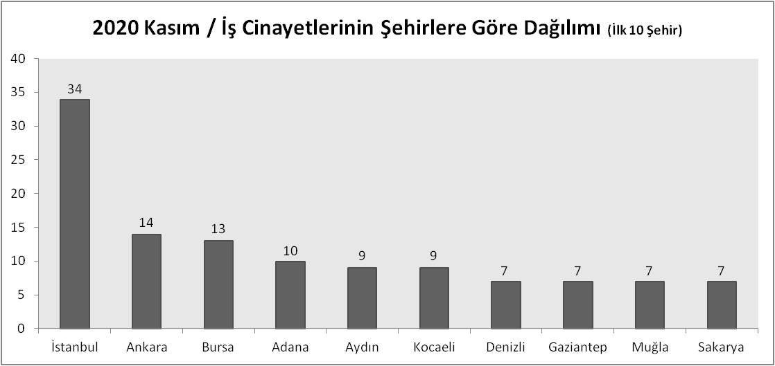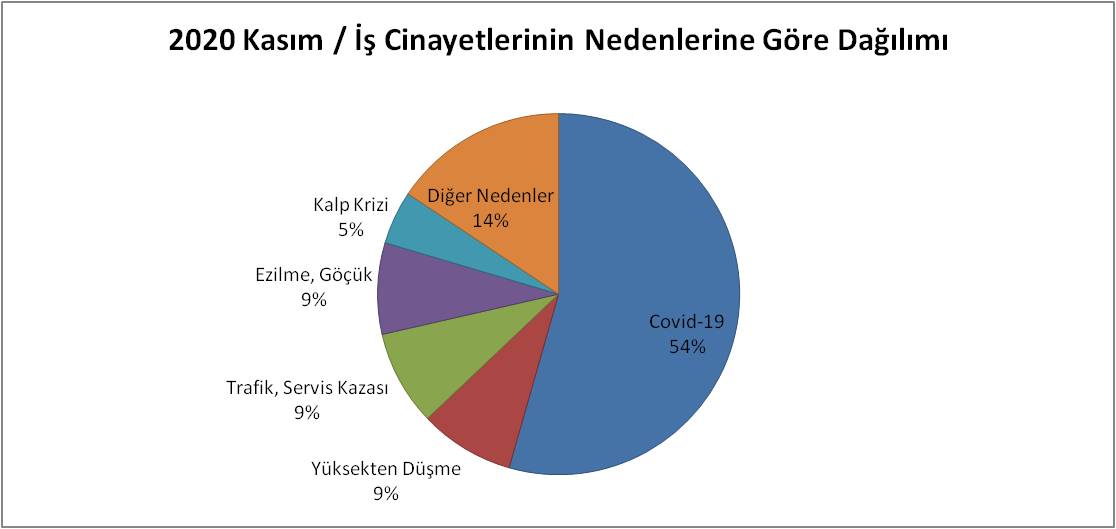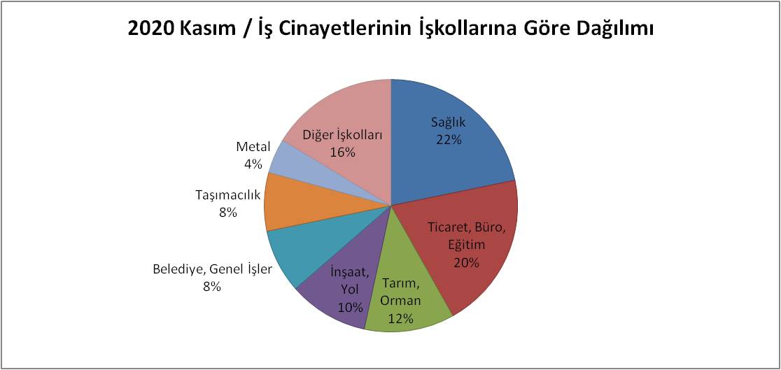 • Ölümler en çok sağlık, ticaret/büro/eğitim, tarım, inşaat, belediye, taşımacılık, metal, güvenlik, enerji, gıda, tersane ve konaklama işkollarında gerçekleşti.