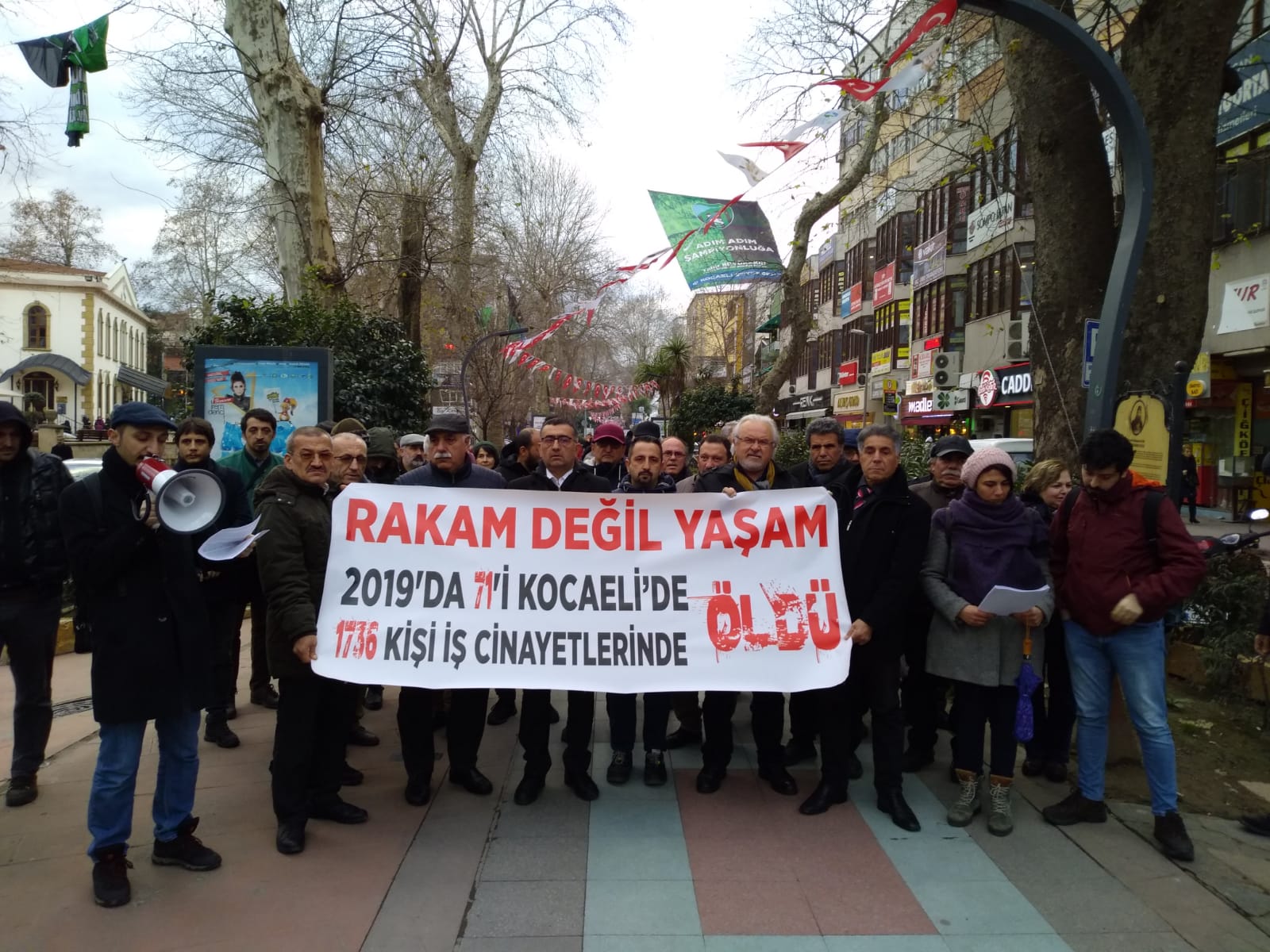 Kocaeli İşçi Sağlığı ve İş Güvenliği Meclisi (İSİG), İzmit Belediye İş Hanı önünde yaptığı açıklamada "2019 yılında en az 1736, son on yılda 15.000’den fazla emekçi iş cinayetlerinde yaşamını yitirdi" dedi. Kocaeli İSİG Meclisi Yürütme Kurulu üyesi Selçuk Karstarlı'nın okuduğu açıklamaya HDP, Emek Partisi, SYKP, Halkevleri, KODA, Dersimliler Derneği ve TMMOB destek verdi.