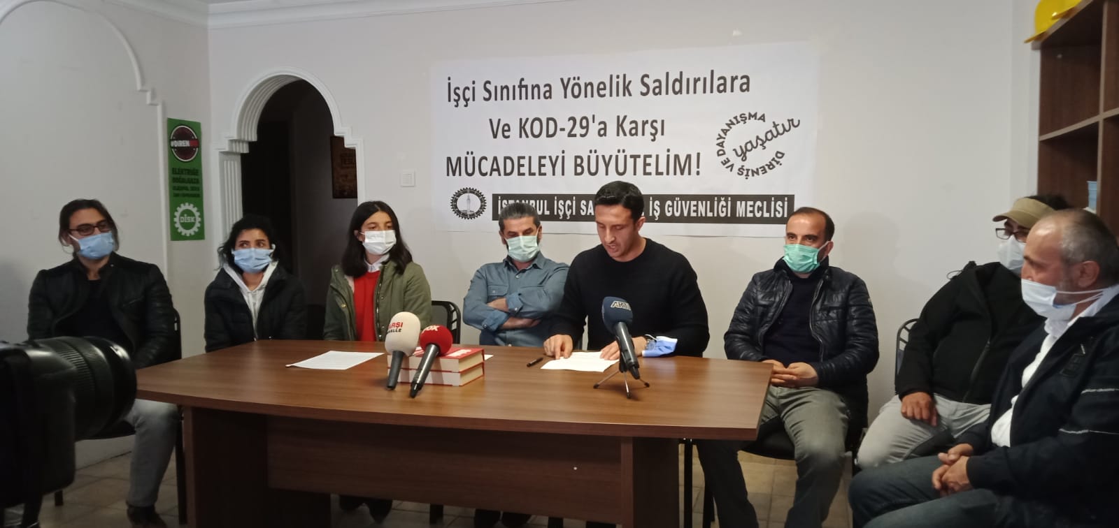 İstanbul İSİG Meclisi adına basın açıklamasını Dev Turizm-İş Sendikası Marmara Şubesi Başkanı Turgay Özdemir okudu. Basın açıklamamız Kod-29’a karşı mücadeleyi büyütme çağrısıyla sona erdi.