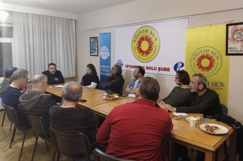 Eğitim Sen İstanbul 1 Nolu Şube, MESEM uygulamasına ilişkin Evrensel’in sağlık ve eğitim editörü Vural Nasuhbeyoğlu ile buluştu. Eğitimcilerin katıldığı etkinlikte Nasuhbeyoğlu, MESEM projesine ilişkin çeşitli örnekleri ve önemli noktaları anlattı, eğitimin piyasaya açılmasına dikkat çekti.