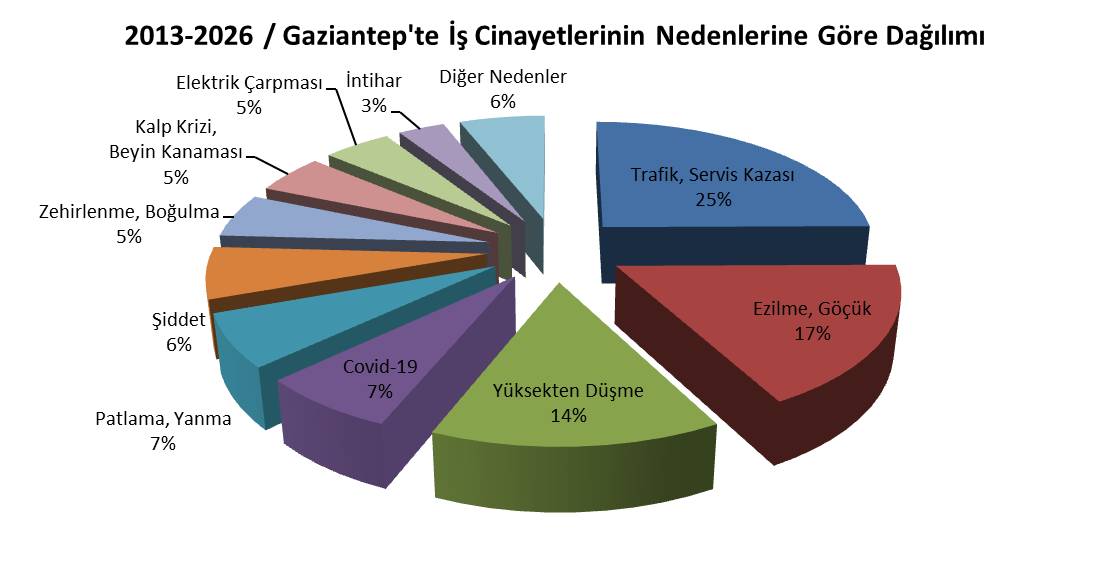 Gaziantep’te iş cinayetlerinin nedenlerine göre dağılımı şöyle: