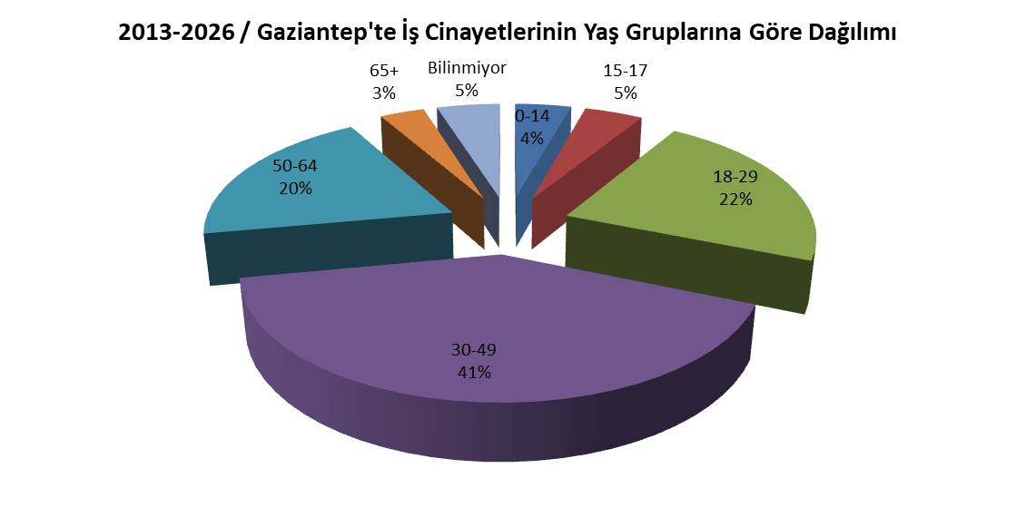Gaziantep’te iş cinayetlerinin yaş gruplarına göre dağılımı şöyle: