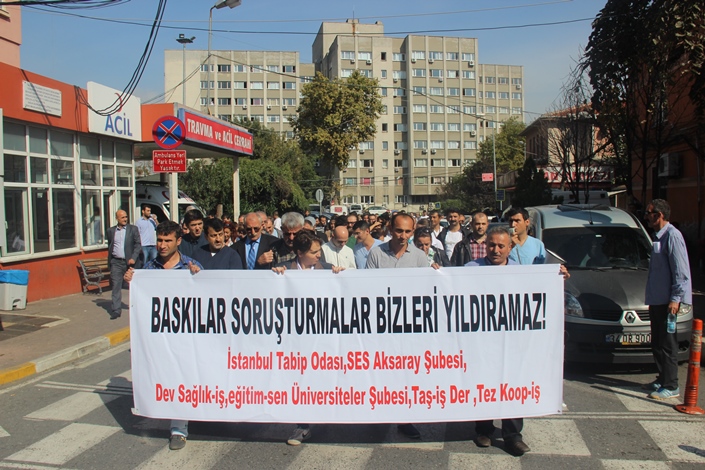 İstanbul Tıp Fakültesi Hastanesi’nde son 2 yıl içinde 2012 yılında klima takarken 6. kattan düşen Serkan Borucu’yu ve taşan kanalizasyona zorla müdahale etmeye zorlanması sonrasında karaciğer yetmezliği gelişen Zafer Açıkgözoğlu’nu geçtiğimiz Ağustos ayında kaybettik. Bu iki iş cinayetinin gerçekleştiği hastanede 6 Temmuz 2014 tarihinde Atlas isimli taşeron şirket bünyesinde çalıştırılan 400 sağlık işçisi ses sisteminin yetersiz olduğu, sessizliğin sağlanamadığı bir amfiye dolduruluyor. Amaç iş sağlığı ve güvenliği eğitimi vermek. Laf olsun diye yapıldığı belli olan eğitimin niteliksiz, süre olarak yetersiz, eğitim ortamının uygunsuz ve eğitime katılan kişi sayısının çok fazla olduğu aşikar. Bu nedenle TAŞİŞ-DER başkanı ve çalışan temsilcisi Cemal Bilgin ve İstanbul Tabip Odası hastane temsilcisi ve SES üyesi Dr. Coşkun Canıvar bu eğitime itirazda bulunuyor. Ama şirket yöneticileri, alelacele işçilere eğitime katıldıklarına dair imza föyleri dolaştırmaya başlıyor ve bu itiraza katılan bir grup işçi verilmekte olan niteliksiz eğitimi kabul etmediklerini söyleyerek salonu terk ediyor. Bunun üzerine Atlas isimli şirketin müdürlerinin emriyle Coşkun Canıvar ve Cemal Bilgin hakkında Anayasanın 42. Maddesi gereğince ‘eğitim ve öğrenim hakkının engellenmesi’ ve ‘6331 sayılı yasa gereği verilen iş sağlığı ve güvenliği eğitiminin engellenmesi’ suçlamalarını içeren bir tutanak tutuluyor ve İstanbul Tıp Fakültesi Başhekimliğinin soruşturma talebi Dekanlık tarafından kabul edilerek arkadaşlarımıza soruşturma açılıyor.