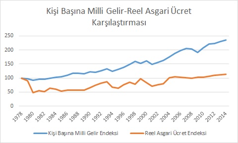 Kişi başına düşen milli gelir ile asgari ücretin gelişim seyri bu sürecin nasıl işlediğini gösteren iyi bir örnektir.