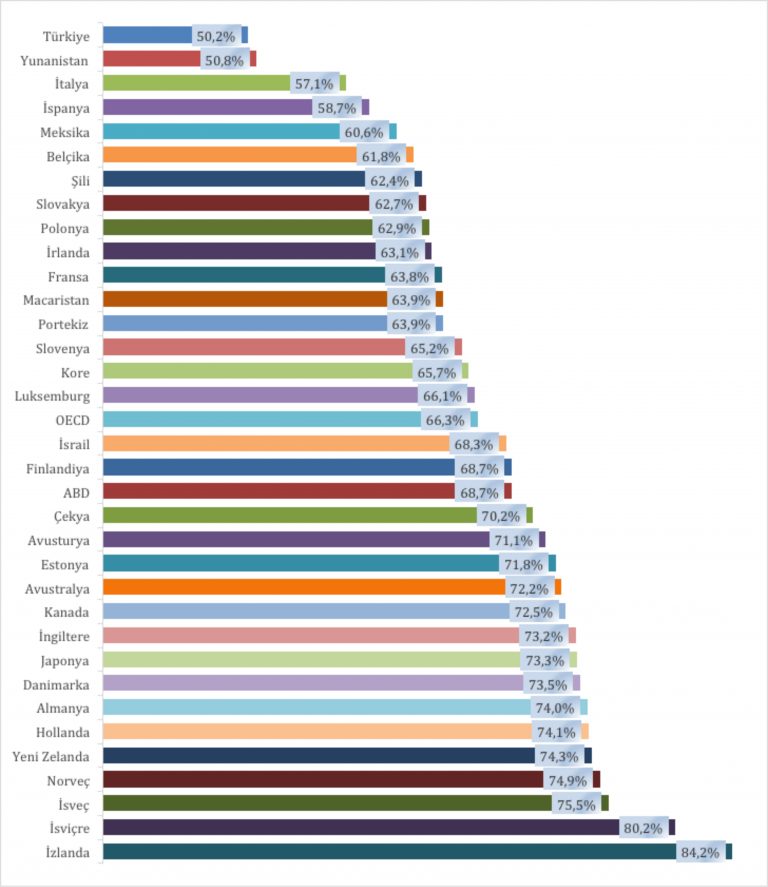 Grafik 3: OECD İstihdam Oranları (2015) (15-64 Yaş Arası)