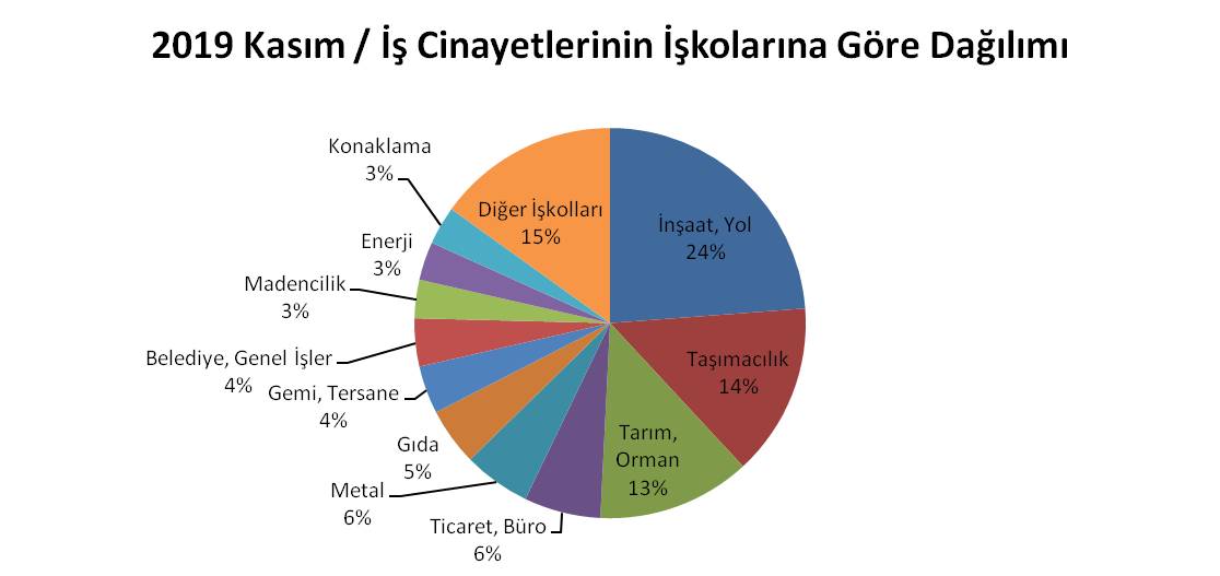 • Ölümler en çok inşaat, taşımacılık, tarım, ticaret/büro, metal, gıda, gemi/tersane, belediye/genel işler, madencilik, enerji ve konaklama işkollarında gerçekleşti.