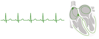 Sağlıklı bir kalbin atışları bir ahenk içindedir.Tıbbi deyimle kalbin ritmi normaldir. Kalp vuruşları düzenli aralıklarla ve aynı güçte gelir. EKG’deki çizgiler kalp ritminin kolayca görülmesini sağlar.